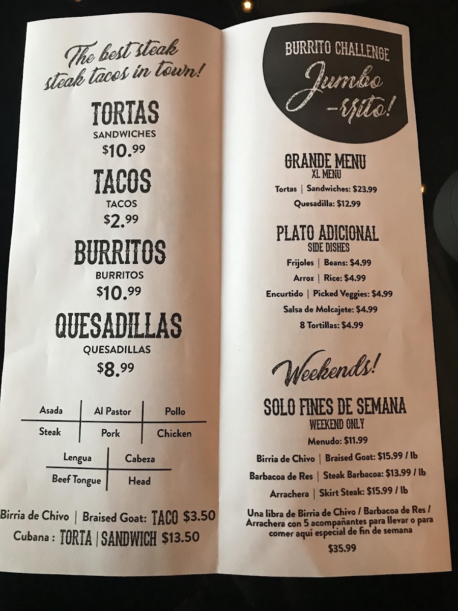 At the heart of the menu are simple, well-prepared tacos featuring options like Asada (steak), Al Pastor (pork), Pollo (chicken), Lengua (beef tongue), and Cabeza (head). These choices reflect a dedication to authentic, traditional flavors presented in a clean, approachable way. Burritos and quesadillas mirror those same fillings, offering a more filling alternative for those looking to linger a little longer or share a heartier dish.